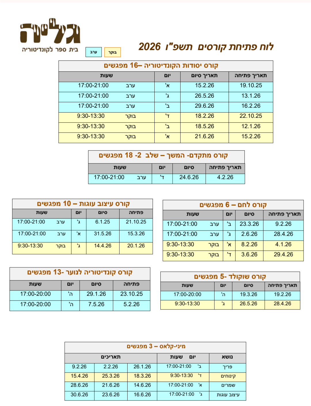 • לוח פתיחת קורסים